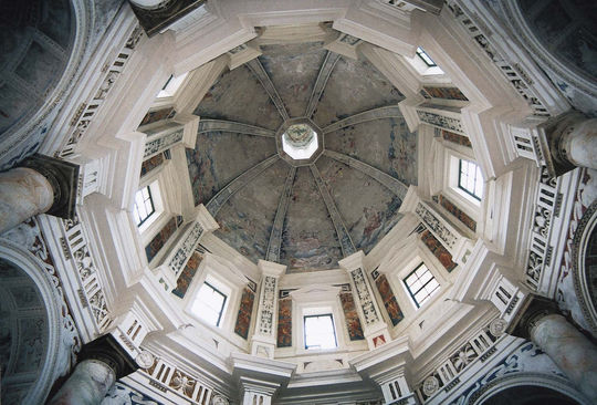 Verso l’uscita nord del paese sorge in posizione elevata la chiesa di Santa Croce, edificata tra il 1588 e il 1592, capolavoro architettonico con in assoluto la più bella cupola rinascimentale di tutta la Svizzera.