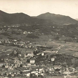 Chiesa dei Santi Giovanni Battista e Provino con il nucleo di Agno nel 1920, vista verso nord-ovest